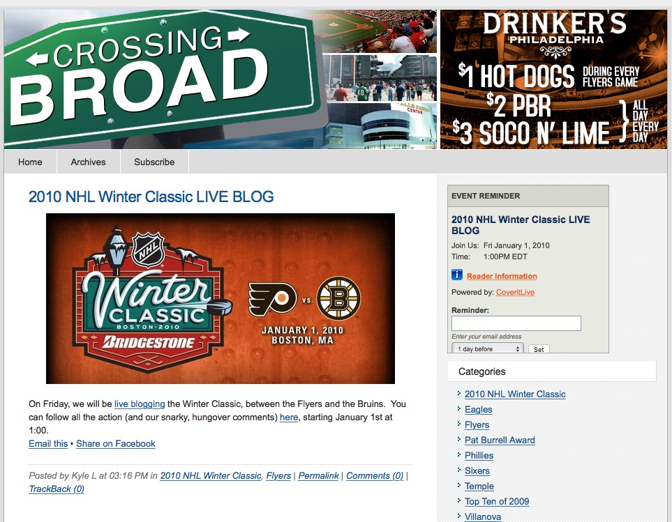 This is where you get the real story. The stuff we can’t post. Several times per year we will hold subscriber-only events at local establishments where you can hang out with writers and contributors and find out about all the stuff we can’t post. This is the perfect place to, say, show you those angry emails from a leading sports talk radio Afternoon host. Or that T.O. pic. Or just gossip about the Philly sports media landscape. This may be worth the subscription price alone.