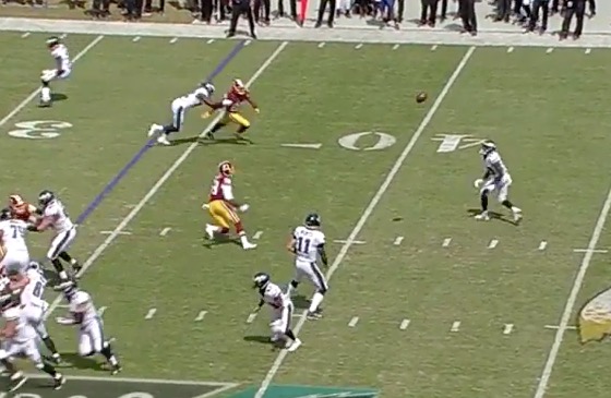 The Eagles luckily recovered a Redskins fumble on the return and scored their second touchdown on the drive.