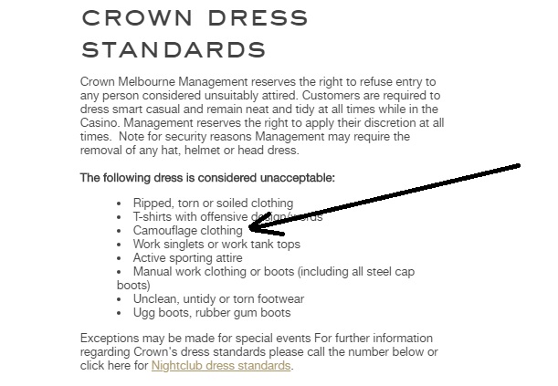 This was the third piece of media I felt was worth sharing, a picture of the casino dress code that was shared by an Aussie entertainment reporter who decided to make his Twitter account private for some reason. I clipped the image from the casino website that he originally posted: