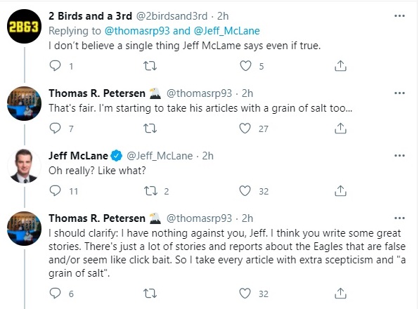 On one side, we had Philadelphia Eagles beat writer Jeff McLane, of the Inquirer. On the other side was Thomas Petersen, the Danish guy who does those good breakdown videos. He’s a relative newcomer to the Eagles media world and has about 17,500 Twitter followers.
