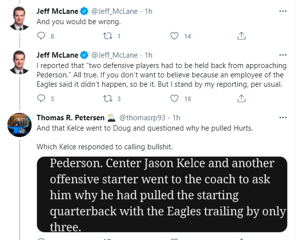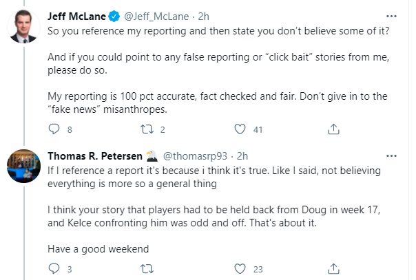 Ultimately, what we have here seems to be a “he said/she said” situation with a bit of misunderstanding sprinkled in. McLane gave his report, Kelce told his side of the story, and then Eagles fans go on to choose whom to believe. Naturally, they’re probably going to gravitate to the Super Bowl-winning, fan-favorite veteran center.