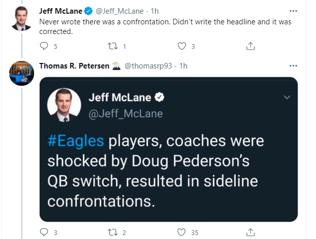 Anyway, that’s one part of this conversation. McLane is saying the headline was corrected, which it was not. He also tweeted out the headline when sharing the story last month, so he gets docked for that misstep. We will deduct one point.