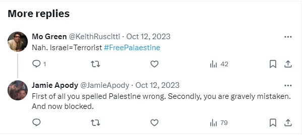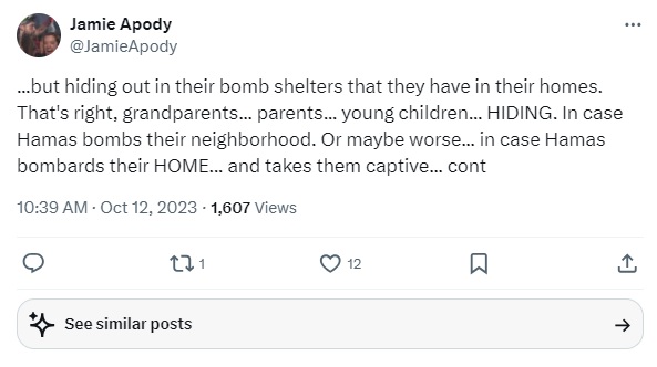 1) I had a couple of people ask me if social media posts about the Israel/Hamas conflict had anything to do with this. Apody is Jewish, and family members are Holocaust survivors. For what it’s worth, not a single person I’ve spoken two in five months brought this up, though I’ll share some examples here: