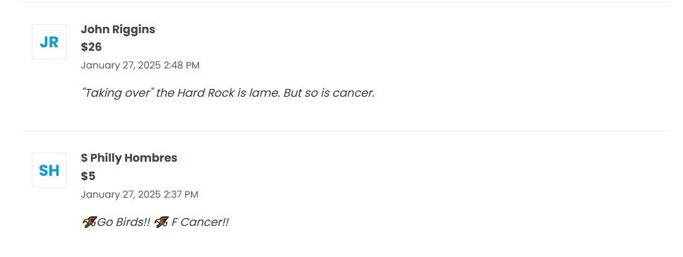 Let’s see if we can flood Ted’s fundraiser with “Go Birds” messages. I put in five bucks and wrote something like “I hate pickleball.” This is for a good cause, so it’s an opportunity to do something nice and chirp this guy one more time. A classic two-fer.