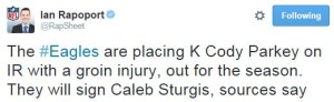 Eagles Report: Cody Parkey Done for the Season, Eagles will Sign Caleb Sturgis Jim Adair • Sep 28th, 2015