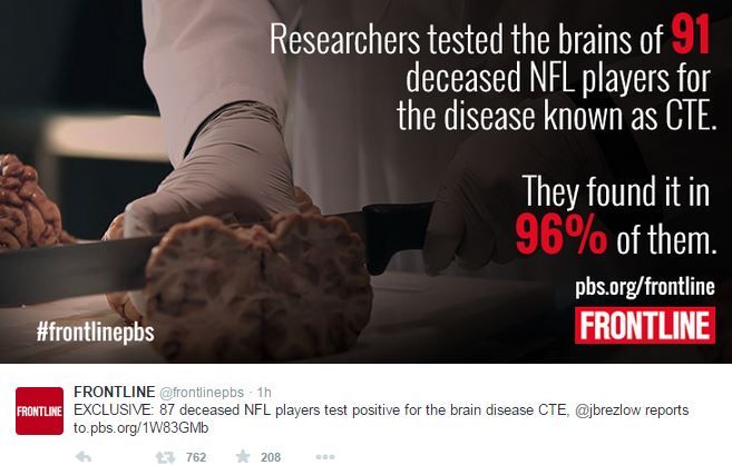 Trending Report: 96% of Former NFL Players Brains Tested by Researchers Showed Signs of CTE Jim Adair • Sep 18th, 2015