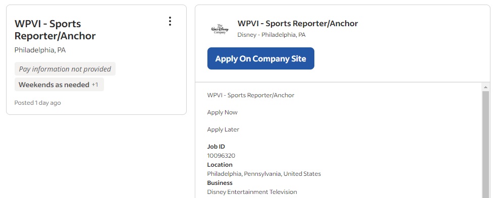 WPVI posted Jamie Apody’s old gig on Indeed and the other job sites: