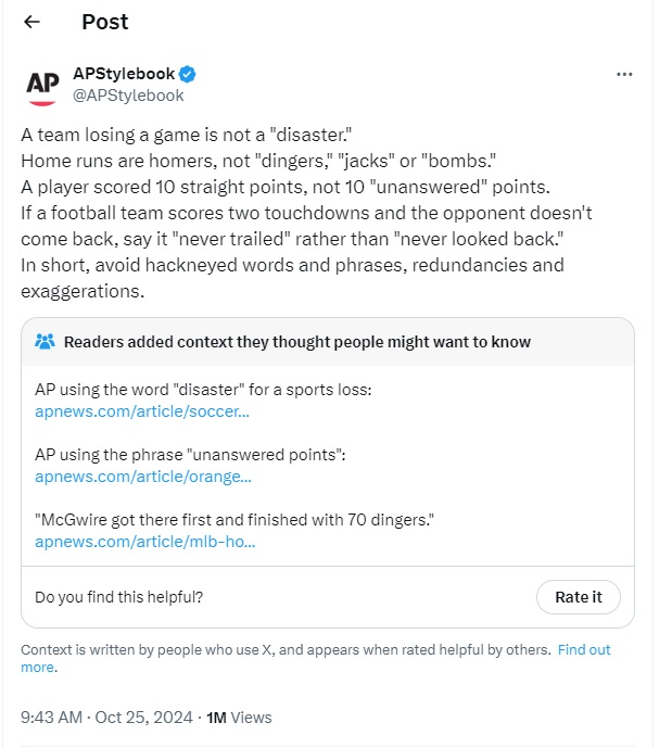 Worst tweet of the week goes to the APStylebook. Look at the community notes: