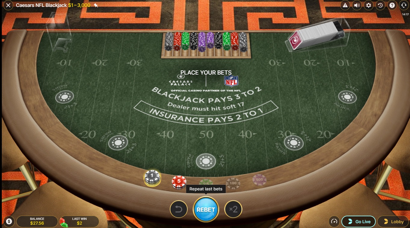 Caesars NFL First Person Blackjack Now Available