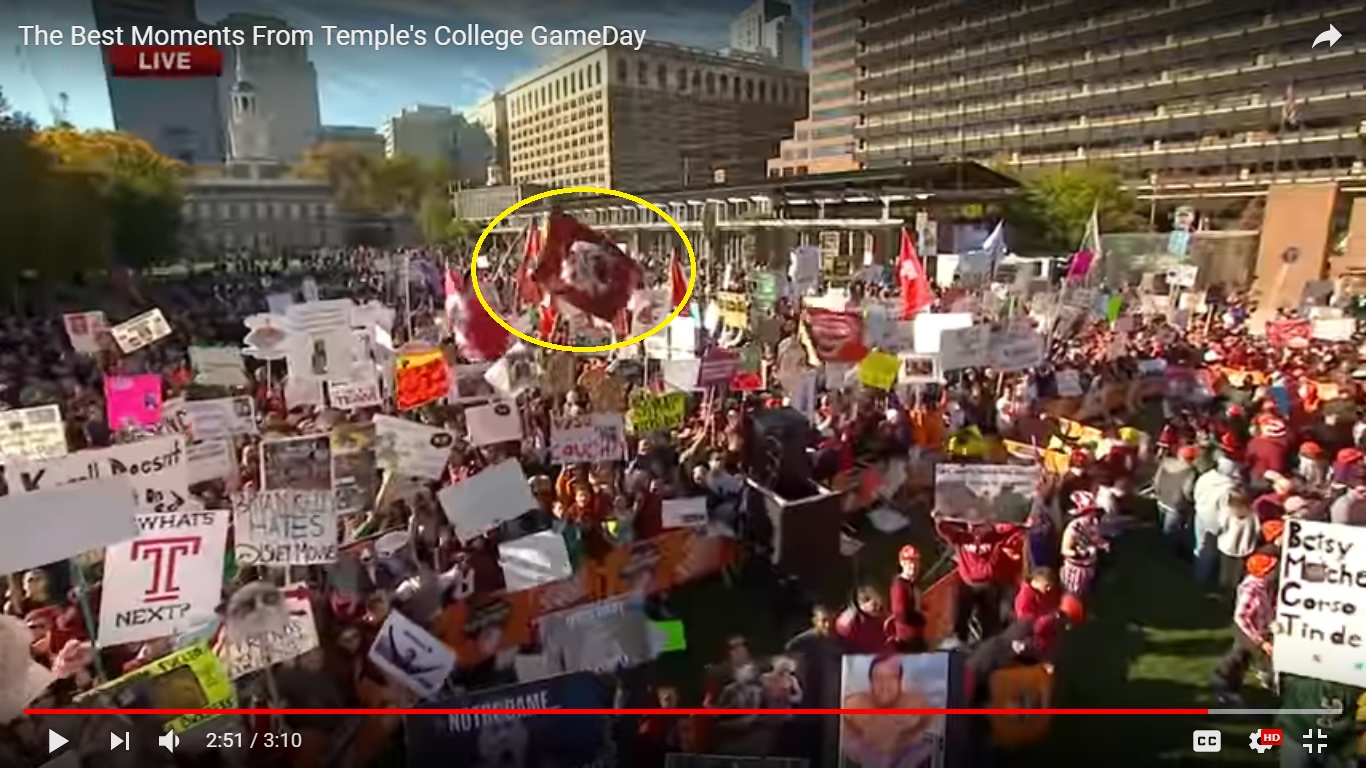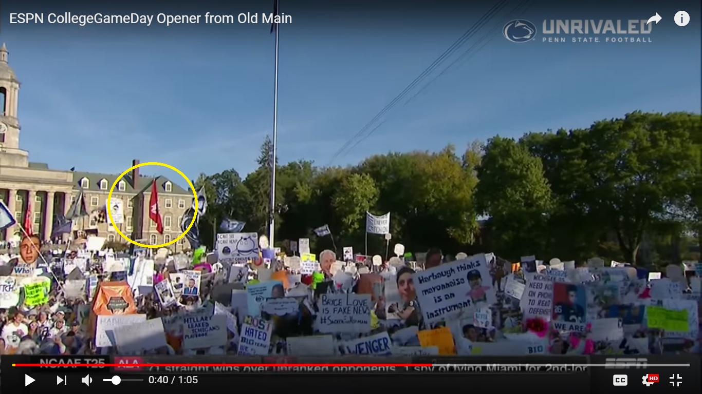 (Penn hosted Gameday in 2002 but the tradition hadn’t started until 2003, so you won’t see the flag in those clips)