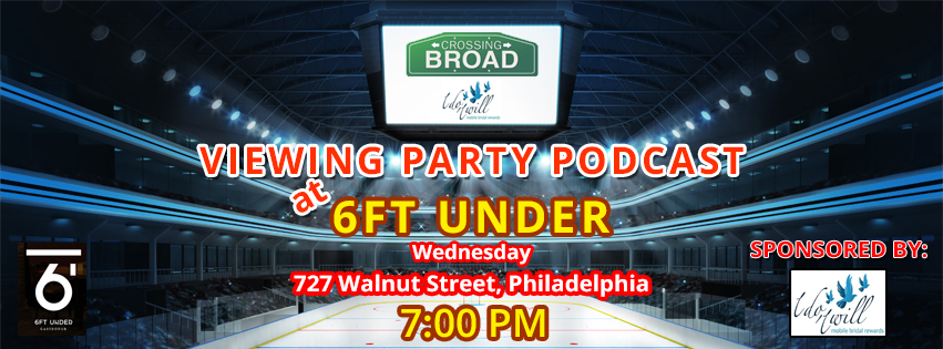 As you’ve seen on the site and heard on the Crossing Broad Podcast Network the past few weeks, we’ve been plugging a LIVE PODCAST on Wednesday, April 11th at 7PM at 6 Feet Under Gastropub. Since Wednesday night is also the same night of Game 1 of the Flyers v. Penguins in the Stanley Cup Playoffs, we’re excited to announce that the event will be a LIVE PODCAST and WATCH PARTY. As always, the event will feature some of the guys who write for the site and host shows on the Crossing Broad Podcast Network, including our Flyers beat writer Anthony SanFilippo. The LIVE PODCAST and WATCH PARTY is brought to you by “I Do & I Will”.