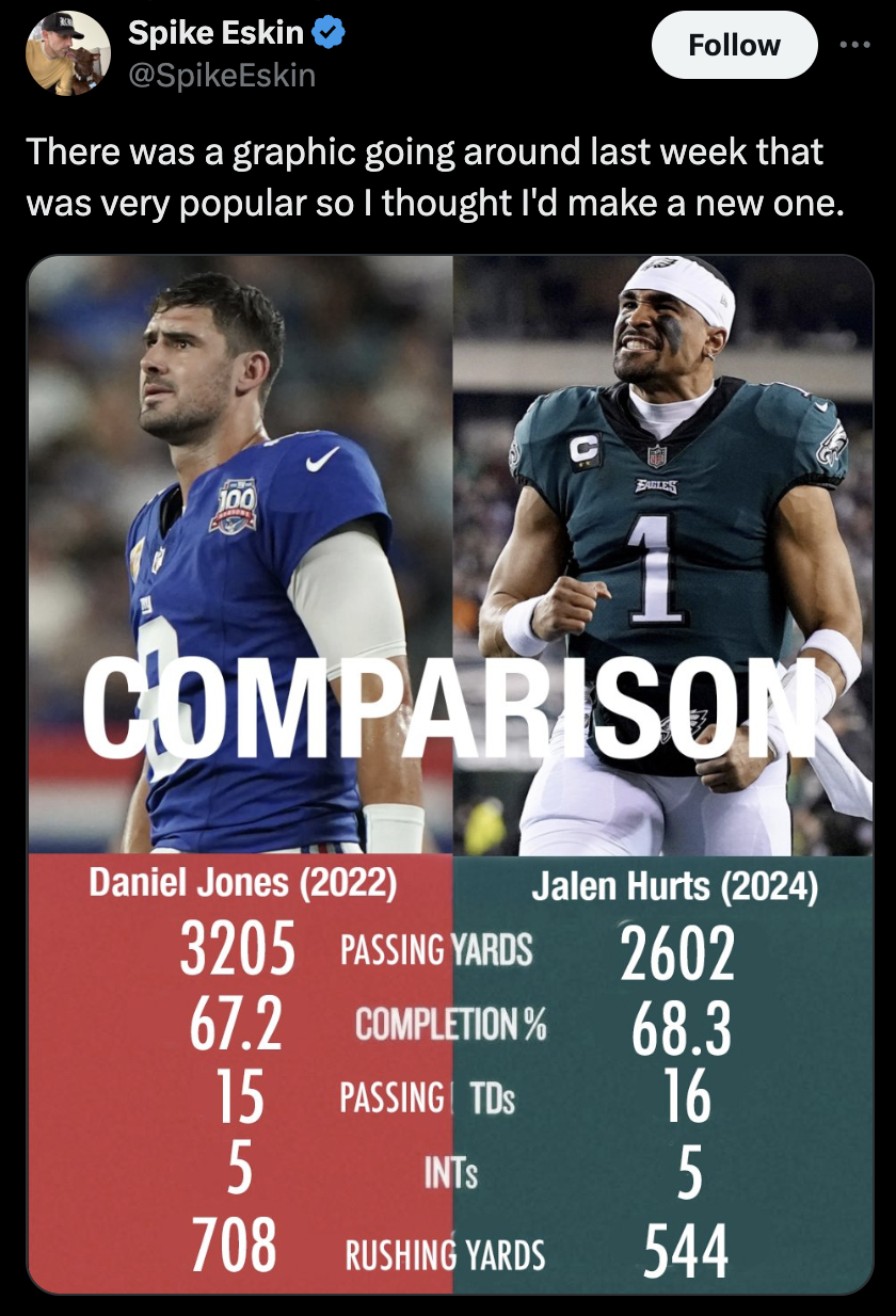 And you know what? I don’t blame Eagles fans for their anger. You’re coming in 10-2, 12.5 point favorites, and the offense didn’t click yesterday. Fans have their sights set on the Super Bowl and anyone who isn’t pulling their weight is going to get called out. Jalen Hurts, Nick Sirianni, and Jake Elliott better start stepping up. AJ Brown has the right to be mad at the passing game because the passing game sucks. Do I think Jaxson Dart is the answer? Absolutely not. Do I think the narrative could switch with one good Hurts game? Absolutely. Welcome to Philly. But the thought in the back of everyone’s mind is always going to be is Hurts good enough to win a Super Bowl or not. Even though we’ve already seen him perform good enough to win in a Super Bowl. It’s just human nature. The Birds are on a crash course to face the Lions in Detroit. If one of the best rushing defenses in the NFL stop Saquon can Hurts make the throws? It’s a fair question.