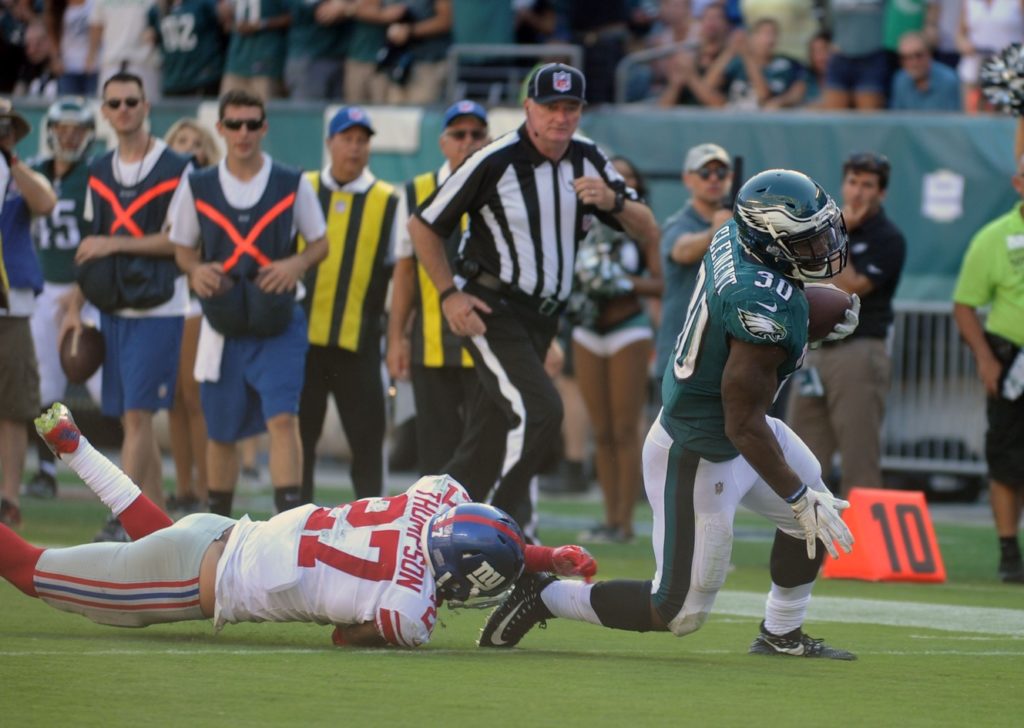 Two-minute warning: Eagles clinging to a 34-29 lead. Giants driving, in Eagles territory. Ronald Darby is trash. Get to a TV, if you can.