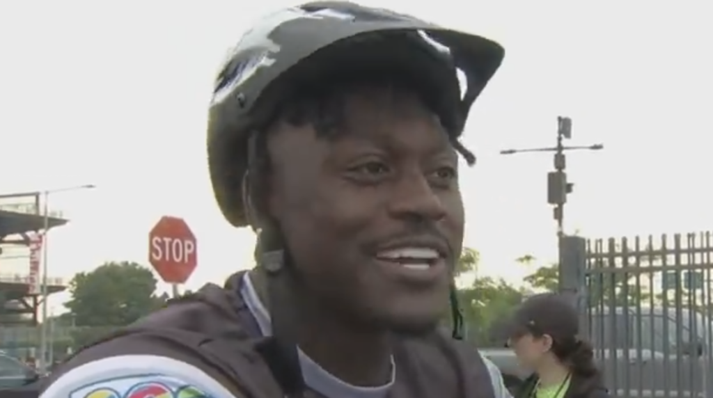 AJ Brown used an electric bike during the Eagles Autism Challenge 10k 😂