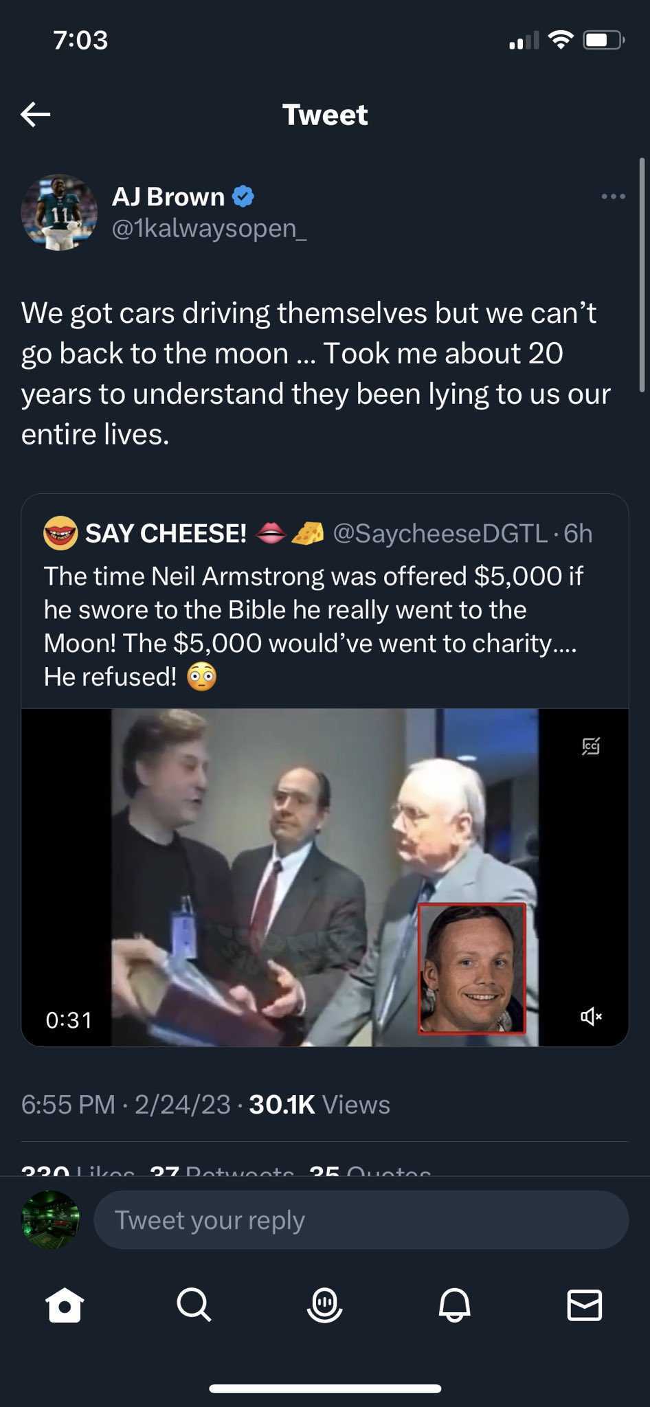 A.J. Brown Tweets and Deletes Some Friday Night Thoughts on the Moon