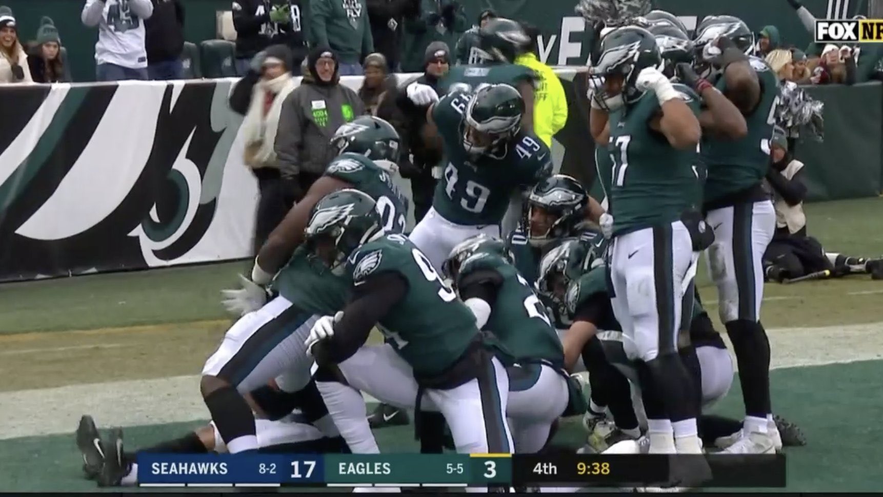 Down 17-3 at home, the Eagles ran to the end zone to pose after a turnover that they didn’t even force: