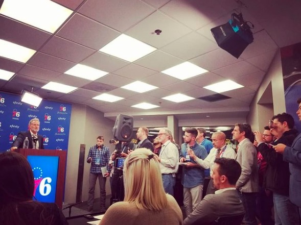 Mixed zone is basically like an organized scrum. We’d gather at Sixers practices and shove 50 mics in Brett Brown’s face, to the point where you were craning your neck or your arm was about to fall off. And at practice, that’s okay. You can still do scrums in an open spot that reporters regularly inhabit.
