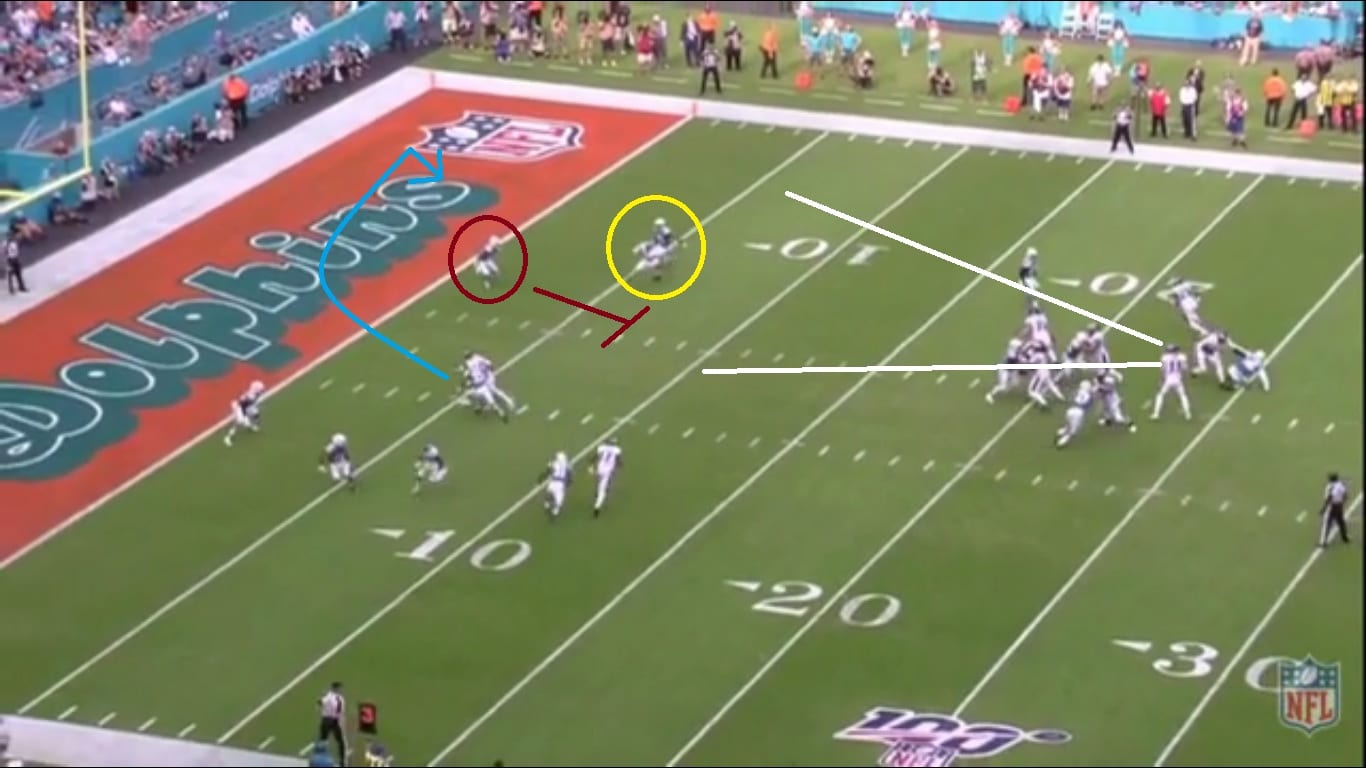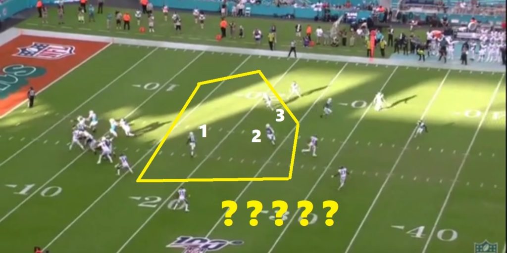 Looked like that coverage just broke down entirely, because there are three Dolphins wide open in the middle with nobody even close to them:
