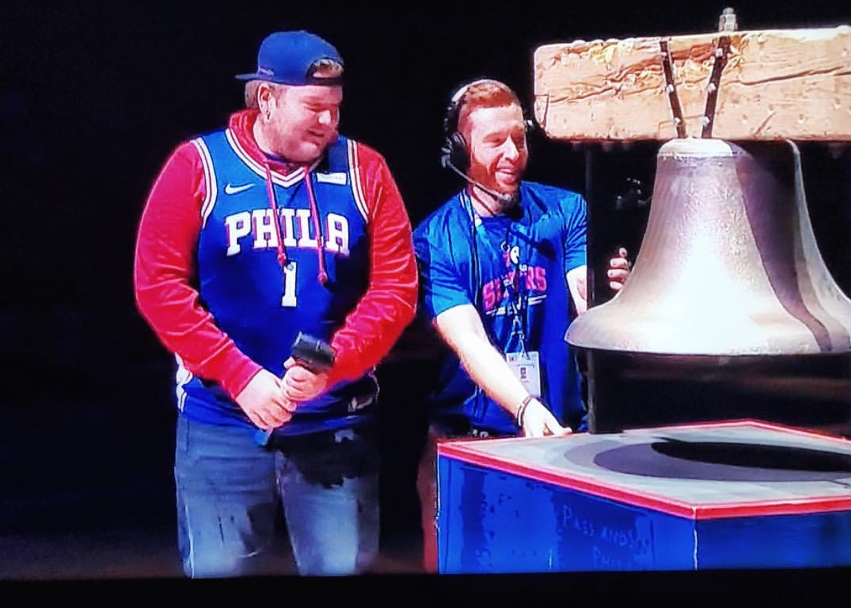 I imagine when the lights drop and Wentz walks onto the court tomorrow night that the noise generated by what should be a boisterous and eager crowd might blow the top off the Wells Fargo Center, but what the hell do I know? That’s why I asked 76ers game day presentation crew member Dan Sieck–the guy who actually rolls the bell onto the floor–what he expects.