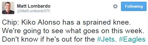 Chip is Vague on Kiko Alonso, Says He’s Not Yet Ruled Out for Sunday