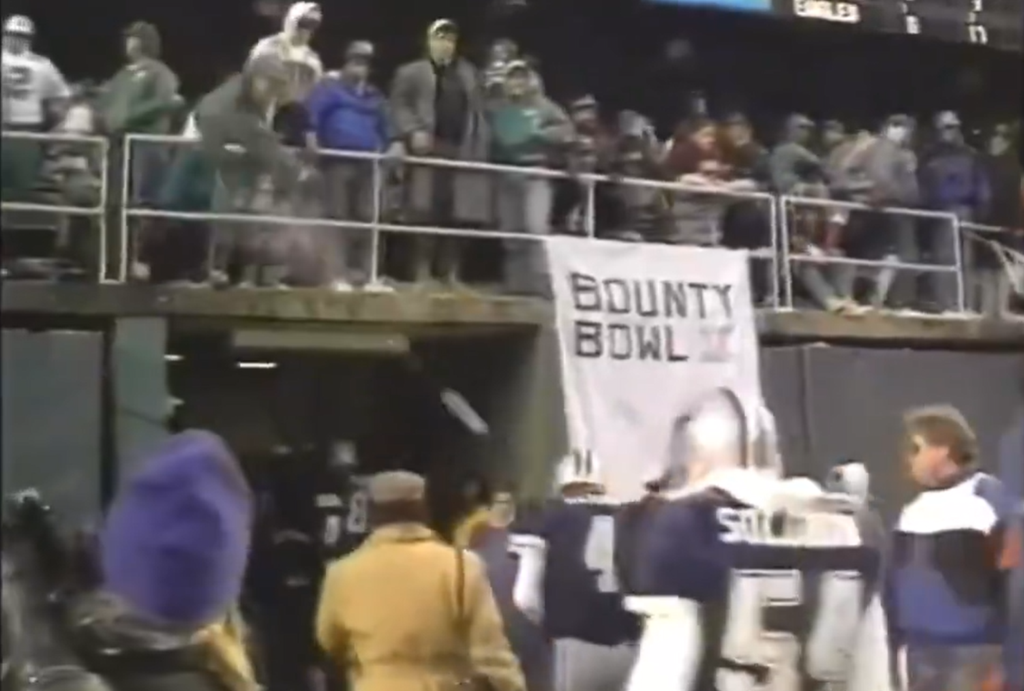 You all know the backstory. Just a mere two weeks after the original Bounty Bowl played on Thanksgiving in Dallas, the bad blood between the Eagles and Cowboys had been simmering all season. Cowboys head coach Jimmy Johnson accused Eagles coach Buddy Ryan of taking out a bounty on placekicker Luis Zendejas and quarterback Troy Aikman, offering a $100 reward for a big hit on either player.