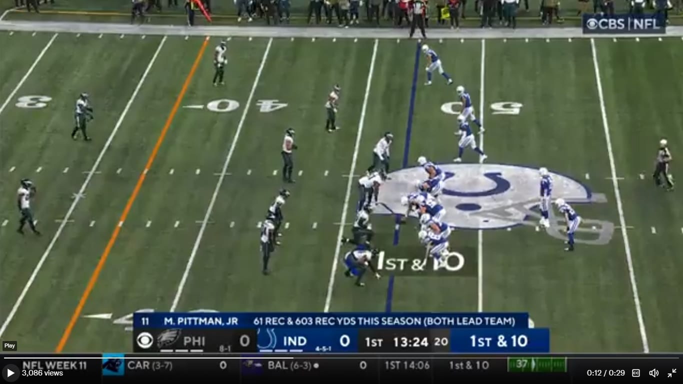 It’s just 11 personnel for the Colts, nothing crazy here, but it’s a soft nickel look for the Birds and James Bradberry fails to make a play.