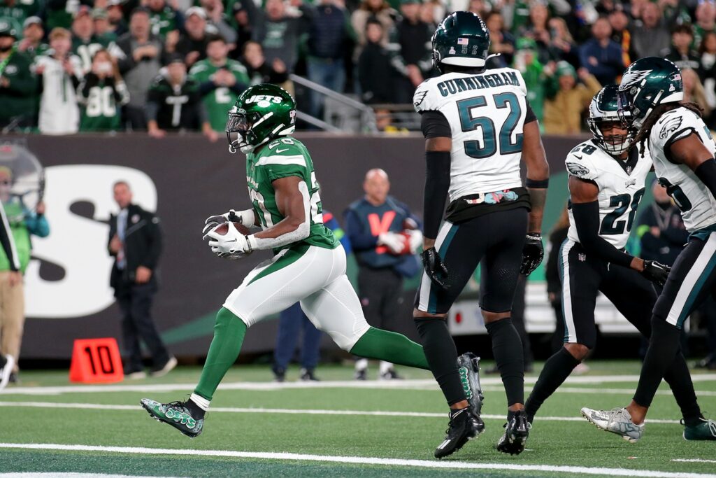 My first thought was that there’s no way this could be true, because the Eagles played horribly and lost that game 20 to 14. Jalen Hurts threw three interceptions and the offense mustered a total of 14 points against a team that wound up finishing 7-10. But the specific allegation is that the Jets’ OFFENSIVE game plan got leaked, and the Birds D really did play well that afternoon. They limited Breece Hall to 39 rushing yards and Zach Wilson went 19-33 for 186 yards.
