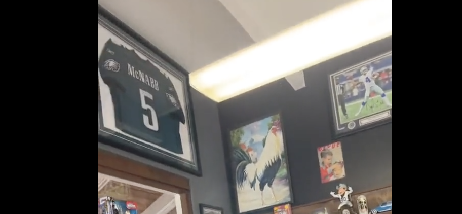 I don’t understand the sports allegiance of this barber. Barbers take their stations seriously. So why is there a McNabb jersey feet away from all this Cowboys bullshit?