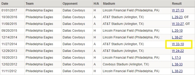 Remove that Romo game and the Eagles are 3-6 against the Cowboys dating back to 2012.