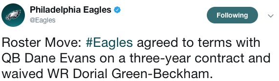No surprise here given the additions of Alshon Jeffery and Torrey Smith. Though he doesn’t have the same physcial traits, Nelson Agholor has a better chance of coming out of his funk (IF HE WOULD JUST CATCH THE DAMN BALL). He runs better routes and seems to have a better work ethic than DGB.