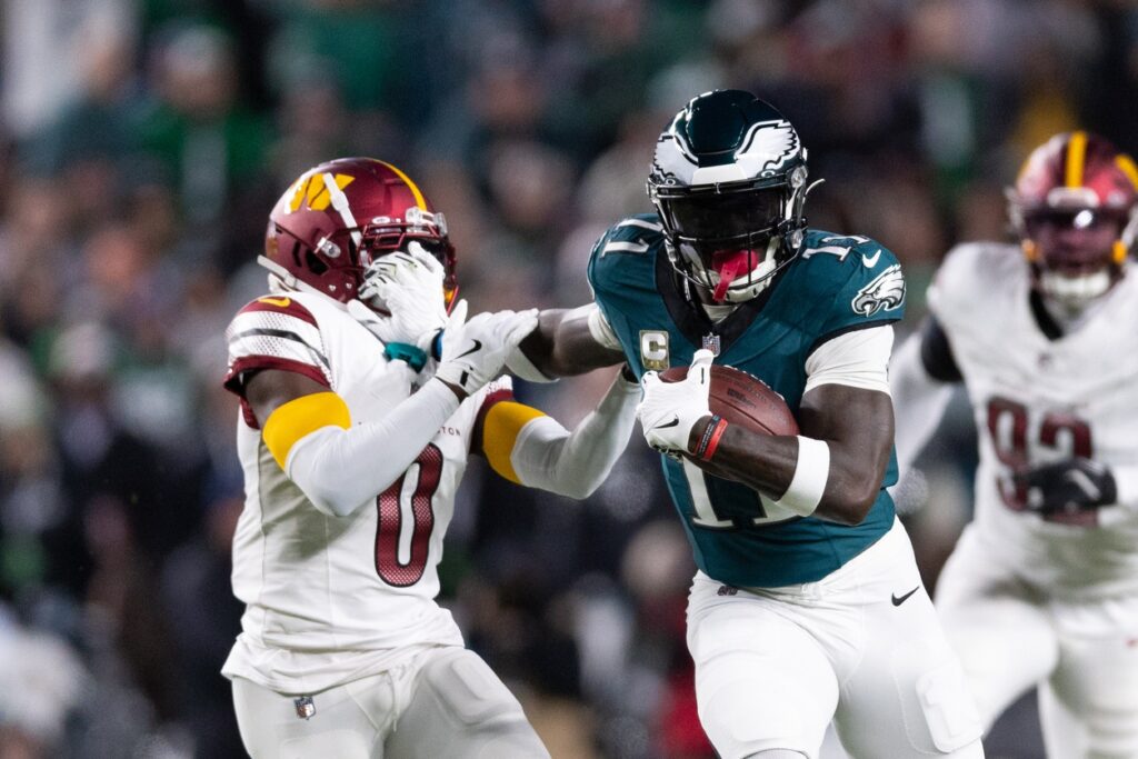 As for the other star wide receiver, Terry McLaurin was held to 70 receiving yards in his two games against the Eagles. His receiving-yard prop sits at 64.5. I’d be tempted to take the under on that one, especially if a healthy Quinyon Mitchell is patrolling the secondary. Washington will throw the ball, and if you need Same Game Parlay pieces, I would look into Austin Ekeler and Zach Ertz to have 25+ receiving yards. They are Jayden Daniels’ top targets in the short-passing game. I would expect the Eagles to force a ton of quick throws. A SGP of Brown to have 70+ receiving yards and Ertz and Ekeler to have 25+ receiving yards get you at +415 at NJ betting apps. I would mix in Dallas Goedert 25+ receiving yards as well if you trust he’ll be healthy enough.