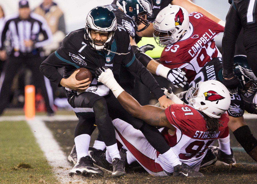 The Eagles made this game more interesting than you might have expected, well into the third quarter, even as defensive backs dropped like flies. Then they started turning the ball over and giving up big runs, and the Cardinals blew them out.