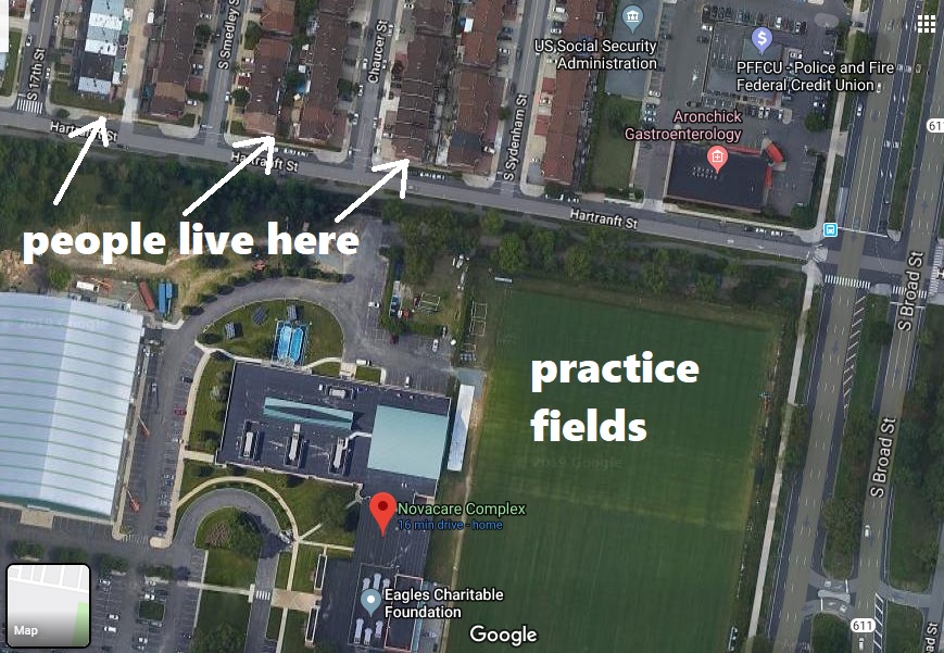 Also, when Smolenski says “neighbors,” he literally is talking about residents who live in the area. There are houses across Hartranft street about 100 feet from the complex, so I’d imagine there’s something written into the Eagles’ lease regarding noise and crowds, but I obviously wouldn’t have access to that information.