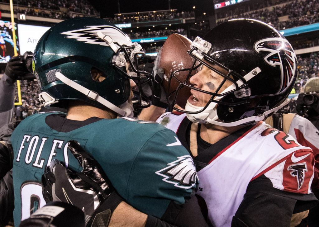 “The Birds did well in auxiliary areas to win this game. They won the possession battle, 32 to 28 minutes. They put together extended scoring drives of 14, 12, and 14 plays. The defense held Atlanta to a 4-13 (30.7%) third down conversation rate, well down from their league-leading 44.7% regular season number. [Julio] Jones got his yards (101 on nine grabs), but didn’t find the end zone. All three units finished with just 4 penalties for 24 yards. And they even had some balls bounce their way, not the fumble on the punt, but the disallowed Mohamed Sanu catch, the Nick Foles fumble recovery, and the ridiculous completion that came off a Falcon safety’s knee, just like they drew it up.”