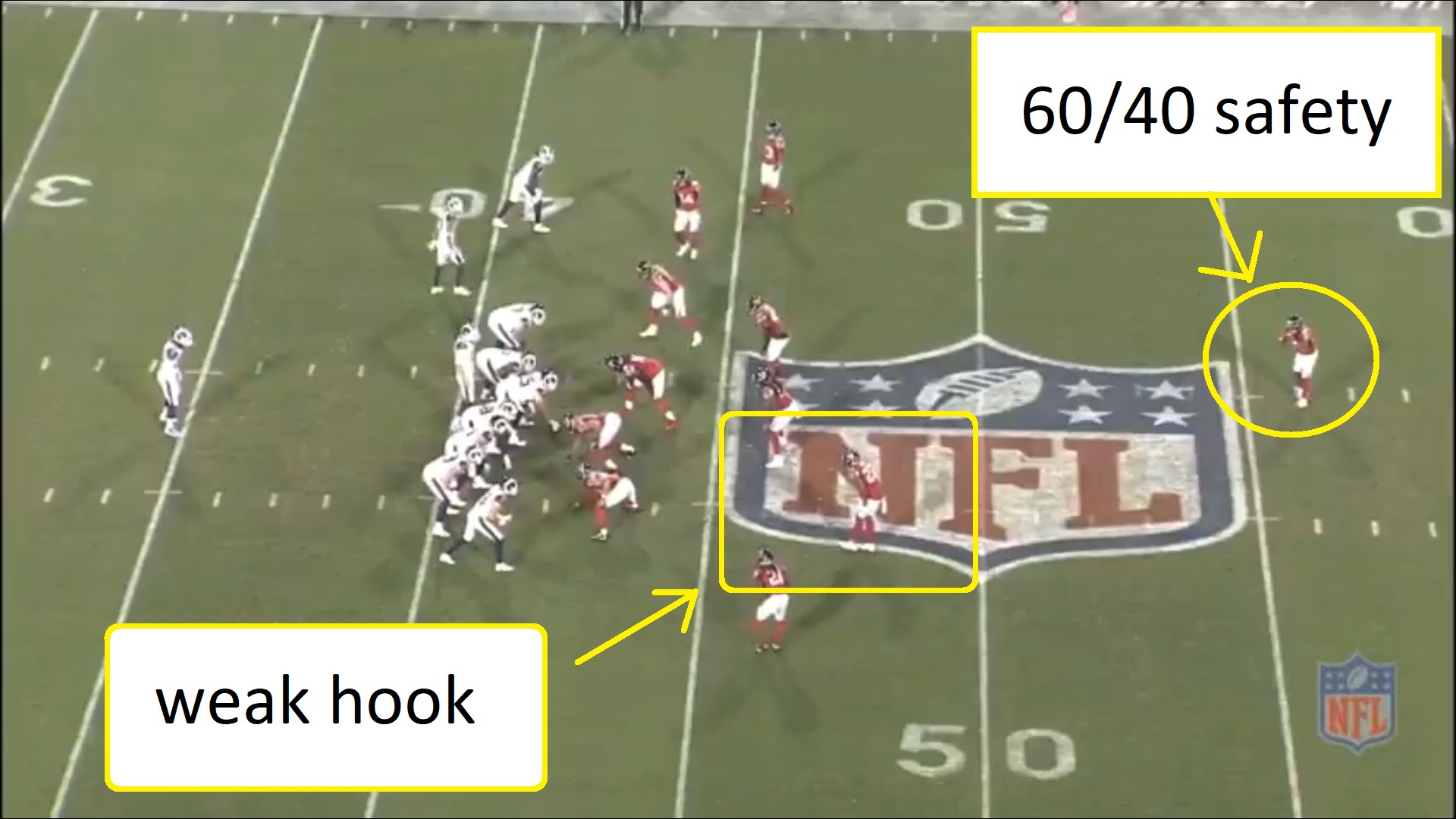They’re a smaller and faster cover three defense that features that 60/40 “single high safety” that we talked about back in January, which is FS Ricardo Allen and SS Keanu Neal, who I couldn’t fit into that graphic above.
