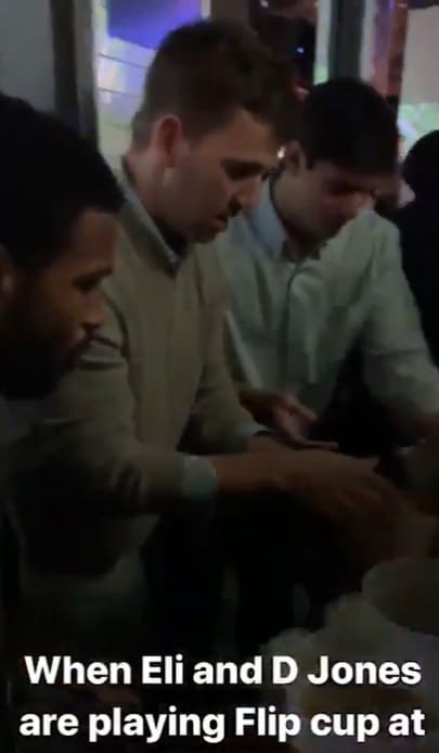 Eli Manning and Daniel Jones went out partying with Giants teammates last night after their BIG overtime win over the Washington Redskins. They threw napkins in the air and even played flip cup: