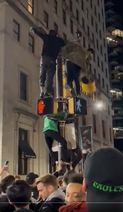 I get the man’s point, but we’re really talking about two different things here. When the Eagles win a big game, people take to the streets to celebrate. They wanna jump around and climb poles and take pictures. Sure, you have drunken idiots who end up damaging property or pissing in the alley, but 99.9% percent of this is relatively harmless. Beyond that, I don’t think anyone actually condones behavior that crosses the line. When I look through the Crossing Broad Twitter and Facebook comments I see plenty of white people annoyed that folks broke a bus stop shelter and left a bunch of trash laying around. There are a lot of Eagles fans out there who condemn behavior deemed irresponsible in these types of settings.