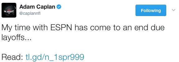 ESPN layoffs are still coming out. Adam Caplan just announced he was let go by ESPN: