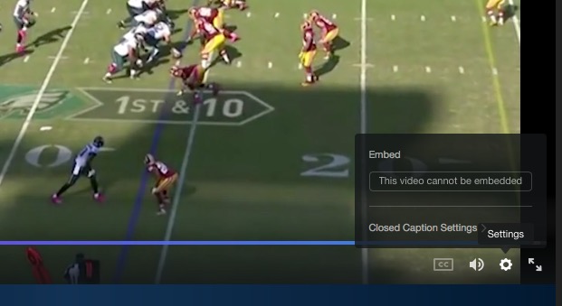 Which brings us to the other problem– the NFL itself. Its stubborn social media policy is regressing. The mandate that NFL teams not post video highlights on Twitter is absurd. And when the league itself posts highlights, they use some proprietary Twitter video player that won’t allow the actual video to be embedded anywhere. Watch– click play and see what happens: