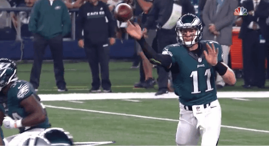 Okay, so he’s about 9% right here. It’s the “if we lose, then it’s like we’ll place blame on this person did this” part. The rest of it is bullshit. For starters, if you’re tired of hearing about drops, don’t drop the ball six times as a group of receivers. If you caught four of those six, which is reasonable, Wentz goes 36 for 43 on the night, and your team has a much better chance of winning. Especially if you catch this one: