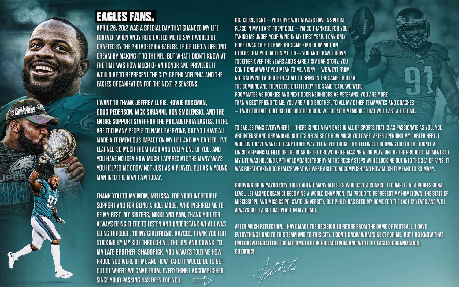 Fletcher Cox Officially Announces Retirement After 12 Eagles Seasons