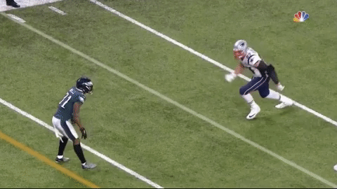 The last play I’ll highlight came on the fourth drive. The Patriots were again driving downfield and faced a second and ten from the Eagles 29-yard line. Brady threw a quick tunnel screen to Danny Amendola, but Malcolm Jenkins sniffs it out beautifully from his linebacker spot, works through the Patriot blockers and limits the play to a 2-yard gain: