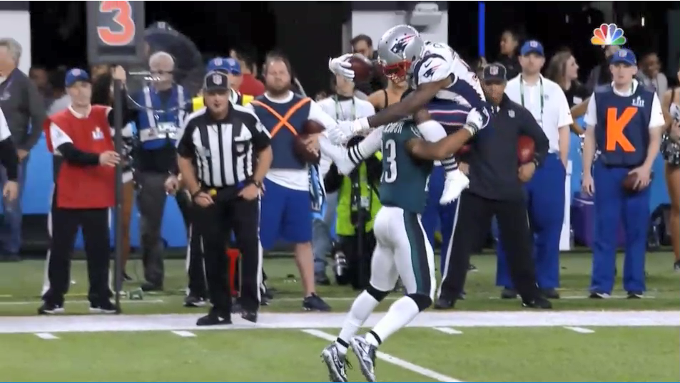 It was the Patriots’ first drive, they faced a critical third and goal, and Brady tried to hit Rob Gronkowski on a short crossing route down by the goalline. The much maligned Jalen Mills, however, was having none of it.