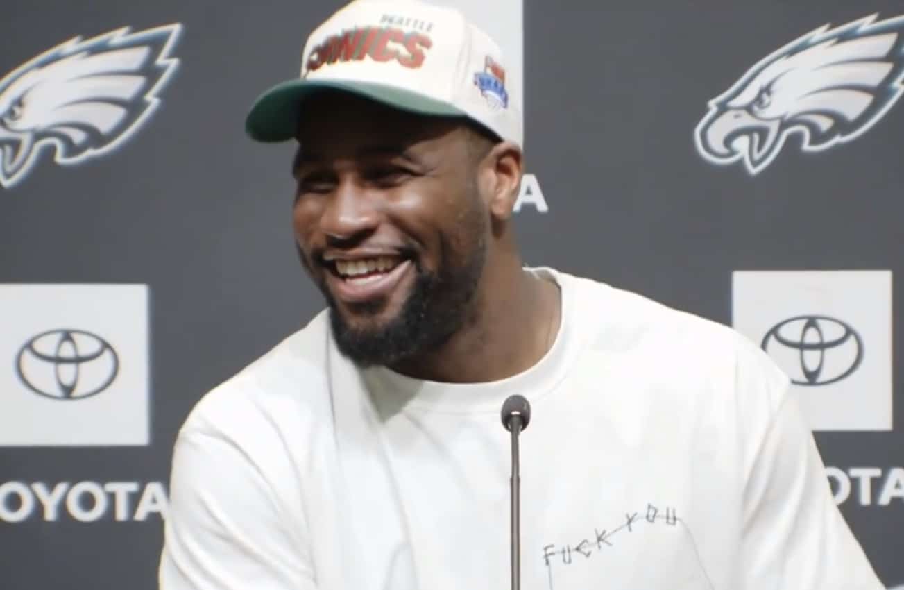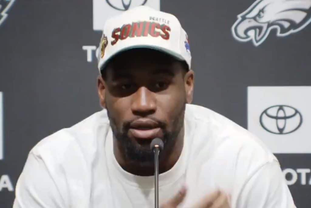 Haason Reddick Shows Up to Presser with Sonics Hat and “F*** You” Shirt