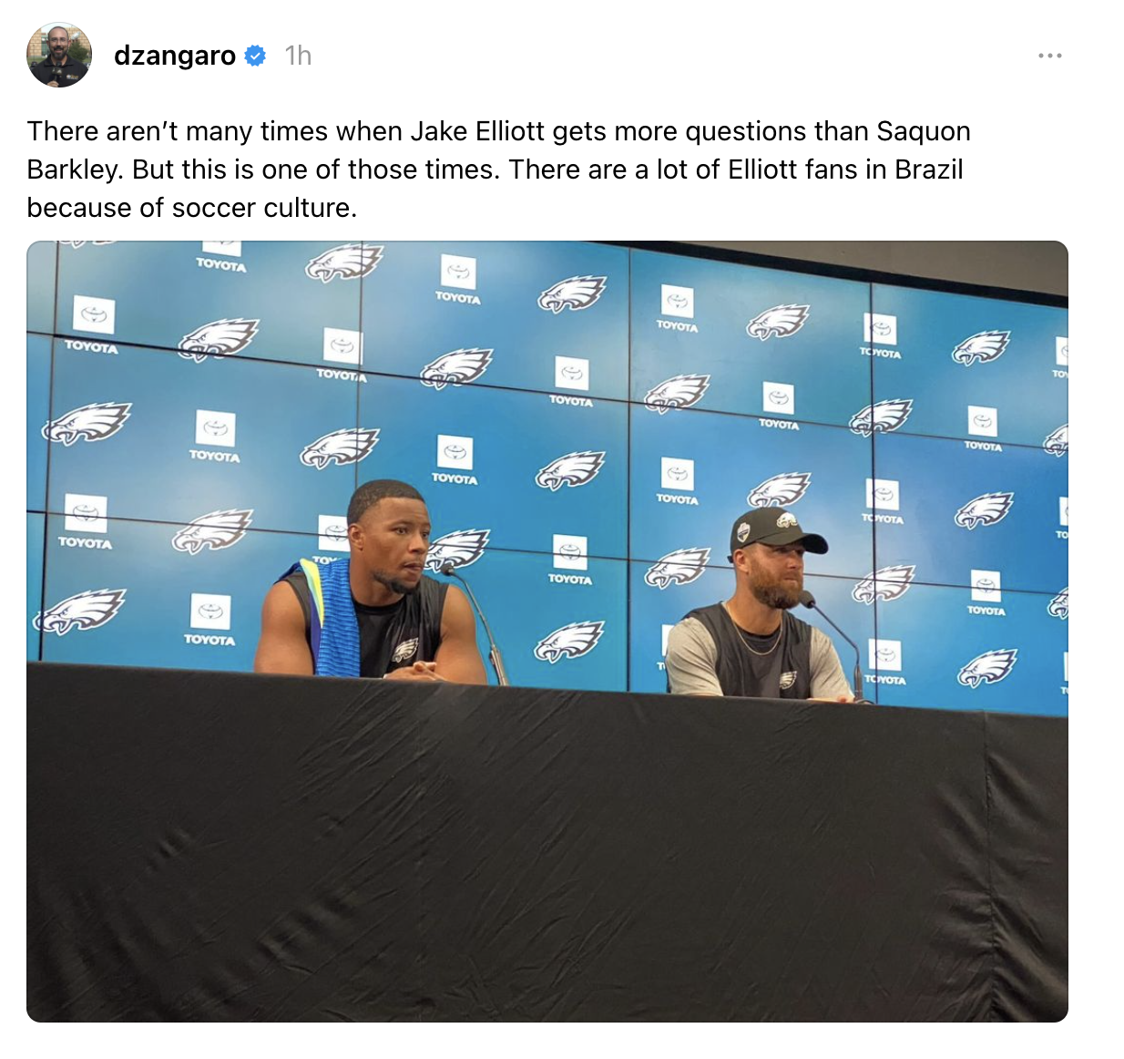 Here’s a round-up of stuff from the stadium, to practice, to Samba(!), and more you might have missed on Instagram, Twitter, and Threads. Yes, Threads! Reporters have been banished to the exile of Threads because the Brazilian government banned X last week. No more of the same tweet about an Eagle going to the blue medical tent from 15 different accounts…at least for one week.