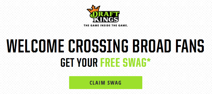 - After submitting your lineup into the Big Game Contest, email your DraftKings username to affiliates@draftkings.com with the subject heading “Crossing Broad.” If you do not email affiliates@draftkings.com, you will not qualify for this offer.
