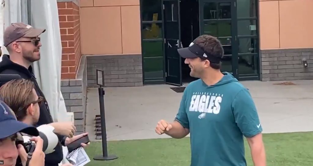 Now this video clip comes along, which shows Eagles head coach Nick Sirianni giving fist bumps to the local media before practice, not realizing that he will totally loathe this group in five month’s time.