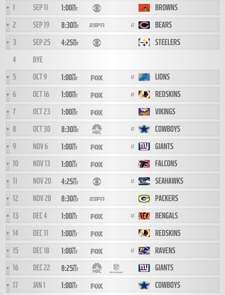 Only one Sunday Night game– that’s what happens when you lose Chip Kelly. Now, for three weeks of brutal schedule predicting on the radio.