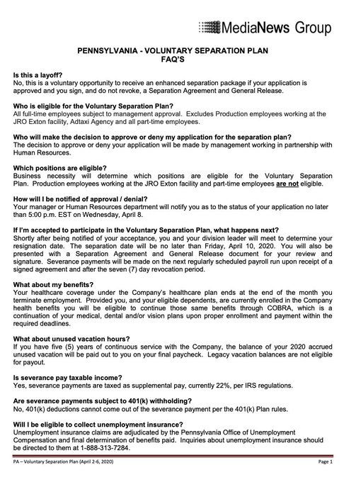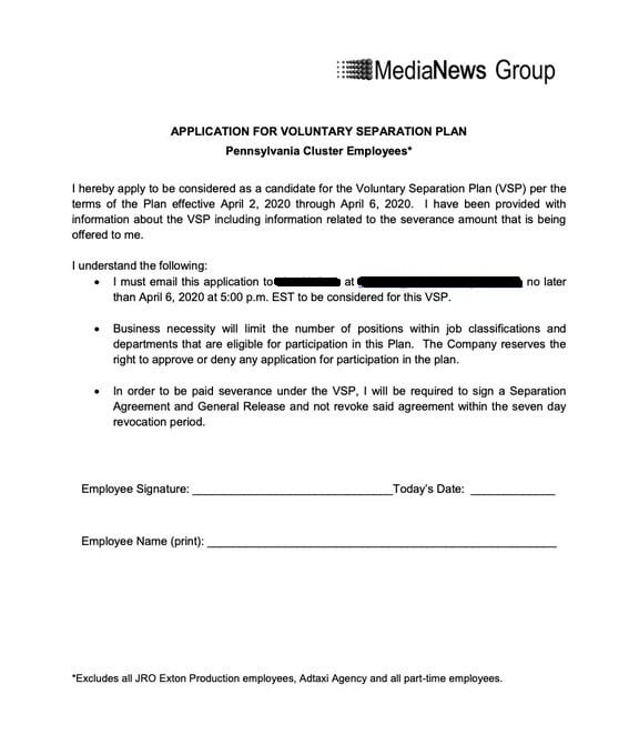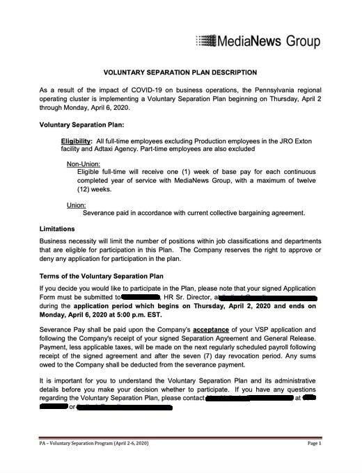 Here’s the “Voluntary Separation Plan” that MediaNews Group Sent to Employees