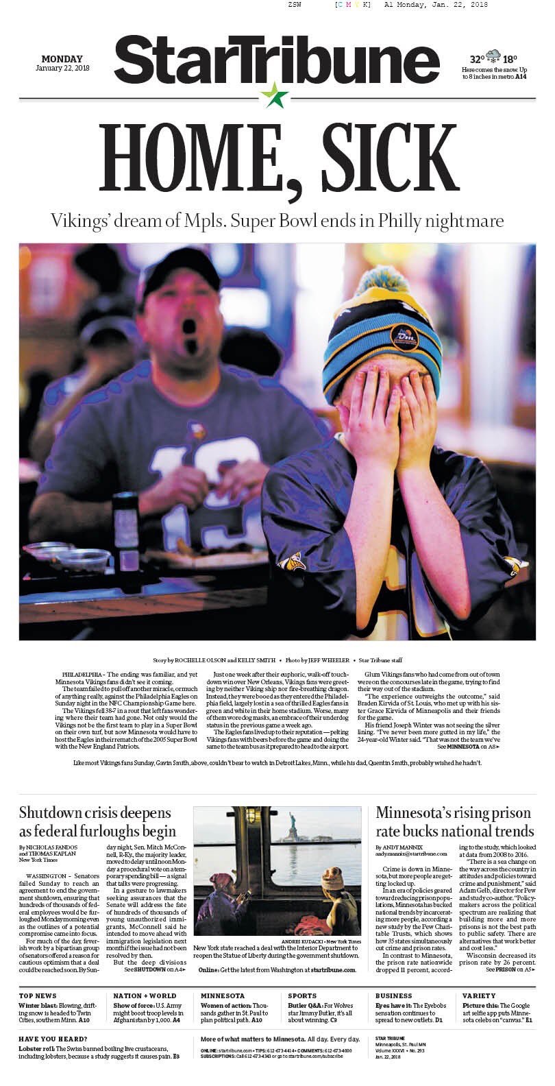 Anyway, you know what else I love? Taking the low road. I can’t help it. There’s just something so wholly satisfying about rubbing a naysayer’s face in it. It’s such an aggressive and gratifying release. Does this make me a bad person? Maybe. Is it indicative of a personality disorder? Absolutely, but I’m owning it—the thought of Minnesota Vikings fans waking up in misery this morning makes me feel good inside. They were so damn sure that their team was going to the Super Bowl, and why wouldn’t they have been? Every talking head, analyst and football writer told them how great the defense was, how solid Case Keenum was, how they were rooting for a team of destiny. Nick Foles? Against that defense. No way. I mean, how much of this stuff did they see this week?